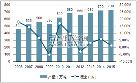 2006 年-2015 年,我國緊固件行業(yè)產(chǎn)量情況